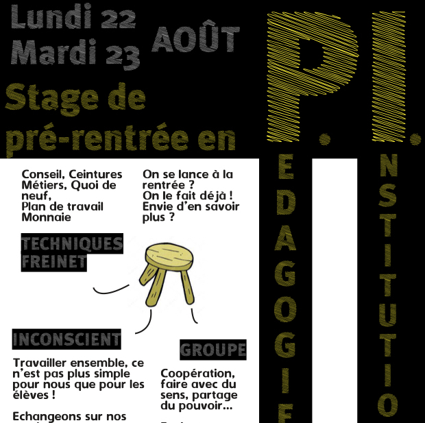 Lundi 22 août 2022 – dans le cadre du stage de pré-rentrée en PI organisé par La Brique, l’association toulousaine de pédagogie institutionnelle – à Toulouse (31).